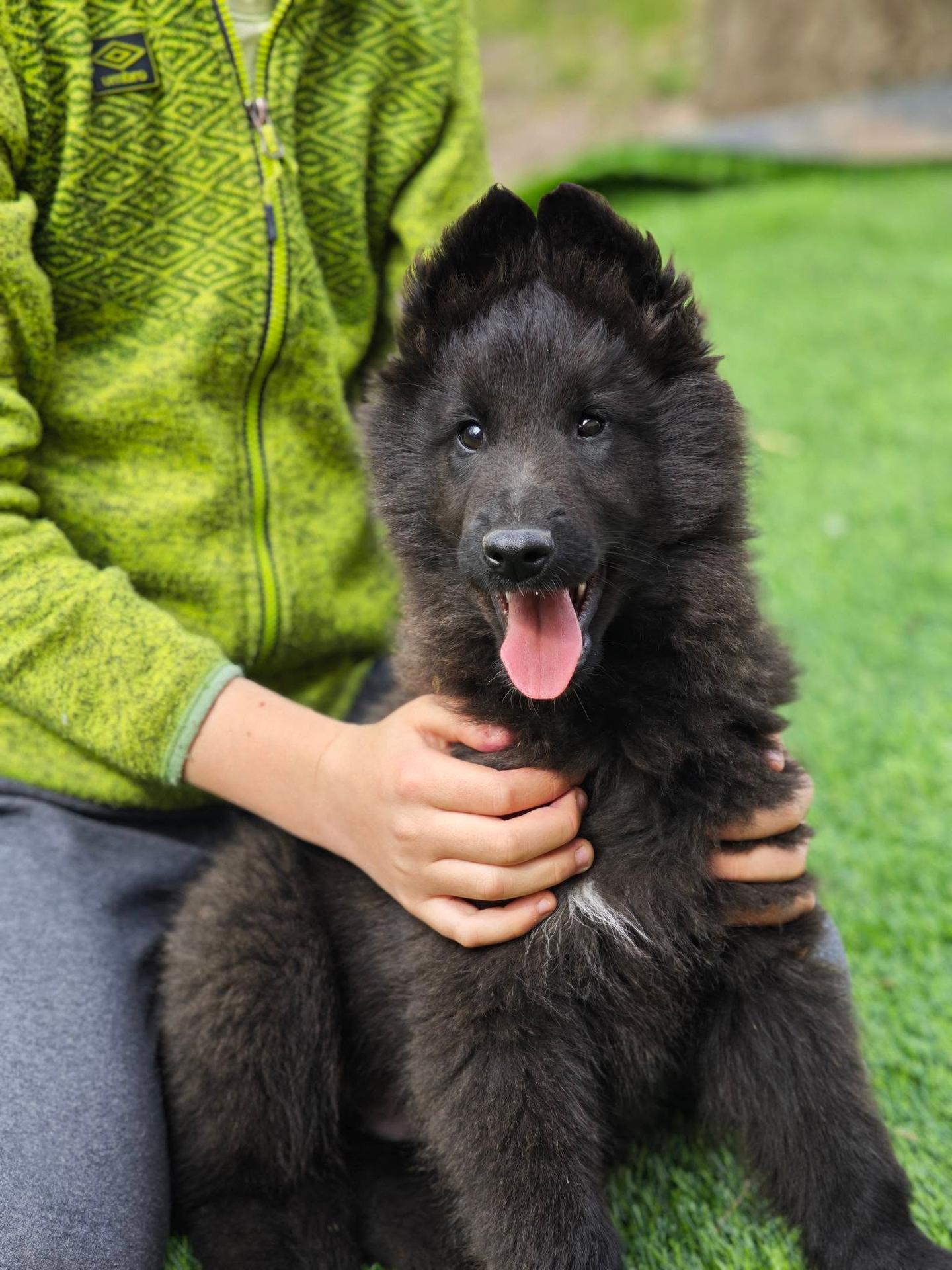 Der Welpe hat ein ausgezeichnetes Wesen – sehr verspielt, mit starkem Beutetrieb, hervorragender Nase, ideal für Sport oder eine aktive Familie. Er ist an Autofahren, fremde Hunde, den normalen Haushalt sowie den Trubel der Stadt gewöhnt.